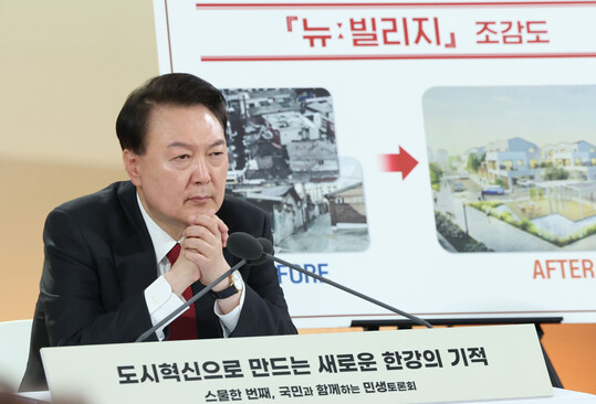 | 윤석열 대통령이 19일 서울 영등포구 문래예술공장에서 '도시혁신으로 만드는 새로운 한강의 기적'을 주제로 열린 스물한 번째 국민과 함께하는 민생토론회에서 박상우 국토교통부 장관과 유인촌 문화체육관광부 장관의 도시 공간·거주·품격 3대 혁신방안 발표를 듣고 있다. (사진=연합뉴스) |