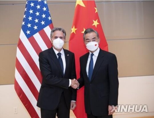 | 작년 9월 유엔총회 계기에 만난 토니 블링컨 미 국무장관(왼쪽)과 왕이 중국 공산당 중앙정치국 위원. (사진=연합뉴스) |