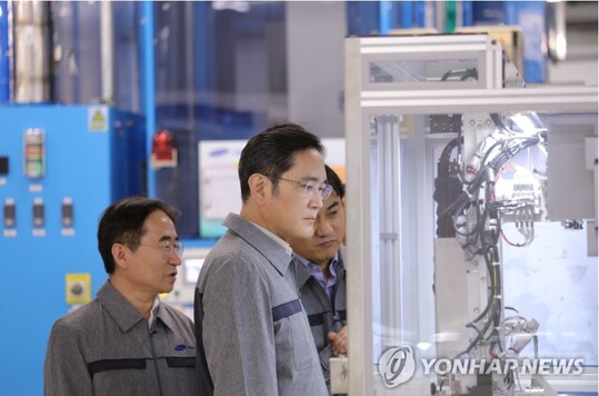 | 이재용 삼성전자 회장이 지난 24일 중국 텐진에 위치한 삼성전기 사업장을 방문해 MLCC 생산 공장 현장을 둘러보고 있다. (사진=연합뉴스) |