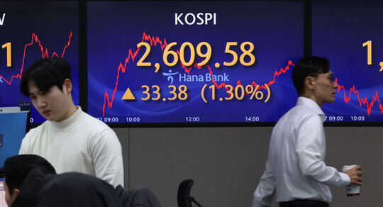 코스피 지수는 전 거래일 대비 33.38p(1.30%) 상승한 2609.58에 거래를 마쳤다. 이날 코스피는 전 거래일보다 16.39p(0.64%) 상승한 2592.59에 출발해 2620선까지 올랐지만 오후 들어 상승폭을 반납했다.