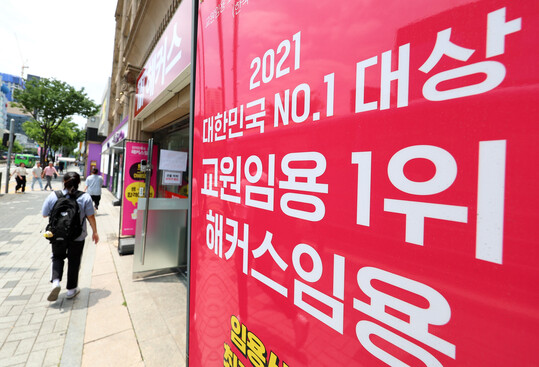 | 공정거래위원회는 27일 '해커스' 브랜드를 운영하는 챔프스터디에 대해 표시·광고법을 위반한 행위에 대해 과징금 2억8천600만원과 시정명령(광고 중지·금지)을 부과한다고 밝혔다. 사진은 27일 서울 노량진 해커스 학원 앞 배너 광고 모습. (사진=연합뉴스) |