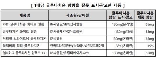 | 글루타치온 함량을 잘못 표시·광고한 제품. (사진=한국소비자원) |