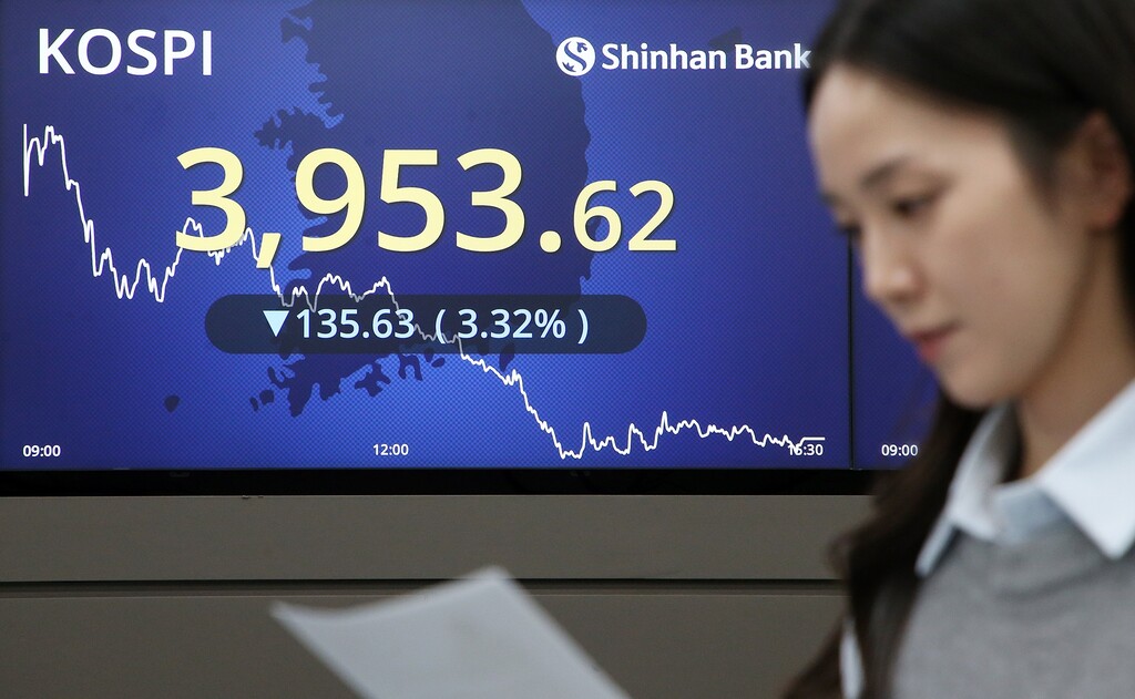 [알파경제=김교식 기자] 코스피 지수가 미국의 기준금리 인하 속도 조절 우려와 인공지능(AI) 거품 논란 재점화로 3%대 급락하며 7거래일 만에 4000선 아래로 떨어졌습니다.