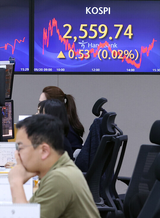 | 미국의 기준금리 결정을 하루 앞둔 20일 코스피는 투자자들이 관망세를 유지한 가운데 소폭 상승한 2,560 턱밑에서 마감했다. 이날 코스피 종가는 전장보다 0.53포인트(0.02%) 오른 2,559.74로 집계됐다. (사진=연합뉴스) |
