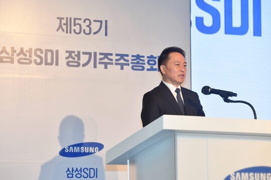 | 최윤호 삼성SDI 사장이 15일 서울 더케이호텔에서 열린 정기주주총회에서 인사말을 하고 있다. (사진=삼성SDI) |