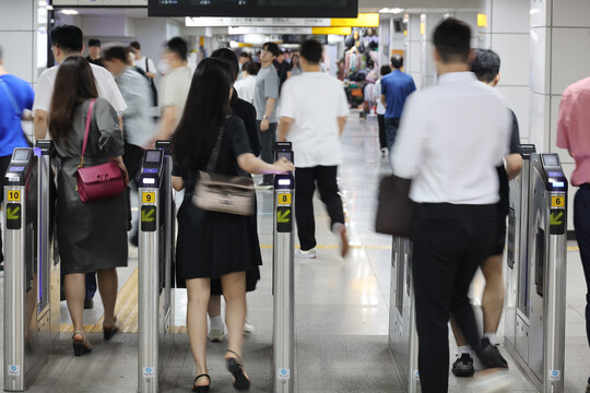 | 서울 지하철의 요금 인상 폭과 시기를 결정하는 '교통요금 조정 물가대책위원회'가 예정된 12일 지하철 1호선 종각역에서 시민들이 개찰구를 통과하고 있다. 지하철의 경우 하반기 일단 150원을 올리는 안이 유력한 가운데, 확정된 요금 인상안은 8월 말 또는 9월 초부터 적용될 것으로 예상된다. (사진=연합뉴스) |