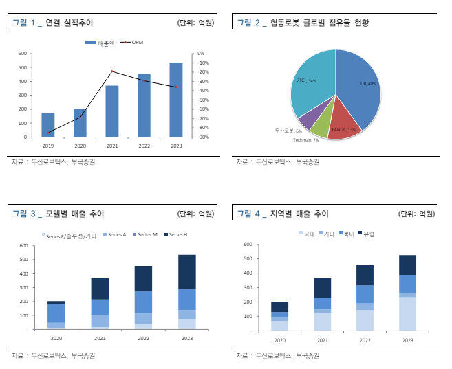 엄태웅 부국증권 연구원은 "협동로봇 산업은 다품종 소량생산 및 고객사별 커스터마이징 기간이 대략 1~1.5년이 소요되는 비즈니스 구조"라며 "인건비에 많은 영향을 받으며 페이백 기간이 짧은 서유럽, 북미 지역에서 높은 수요가 발생하고 있다"고 설명했다. 북미 자동화 솔루션 전문업체인 Rockwell와의 전략적 파트너쉽을 체결하며 올해 북미지역의 빠른 매출 성장이 기대된다는 분석이다.