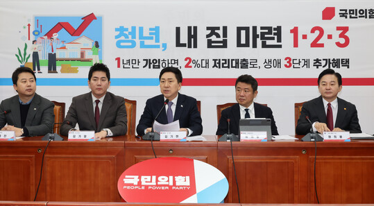 | 국민의힘 김기현 대표가 24일 국회에서 열린 청년의 주택 마련 지원 당정협의회에서 발언하고 있다. (사진=연합뉴스) |