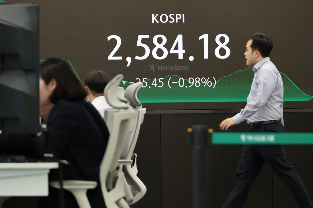 코스피 지수가 전 거래일 대비 0.98% 내린 2584.18에 거래를 마쳤다. 코스피 지수가 종가 기준 2600선 아래로 내려선 것은 지난 2월 6일(2576.20) 이후 처음이다.
