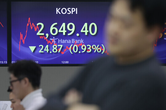 코스피 지수는 전 거래일 대비 24.88포인트(0.93%) 하락한 2649.39에 거래를 마쳤다. 코스닥 지수는 전 거래일 대비 6.60포인트(0.76%) 내린 866.37로 장을 마쳤다.