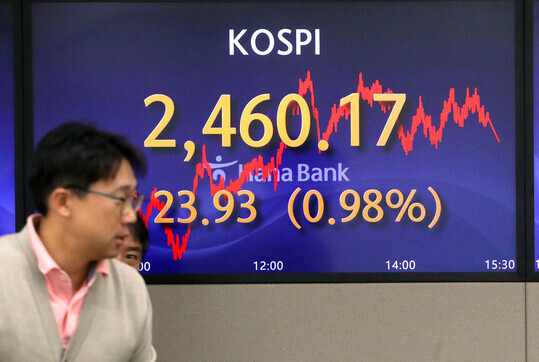 | 코스피가 17일 전날 대비 1% 상승한 23.93포인트(0.98%) 오른 2,460.17로 거래를 마쳤다. (사진=연합뉴스) |