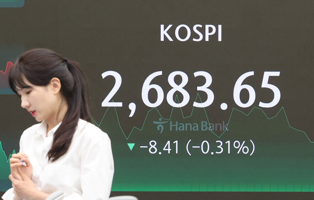 코스피 지수는 전 거래일 대비 8.41포인트(0.31%) 내린 2683.65에 거래를 마쳤다. 개인은 1416억원, 외국인은 22억원 순매수했지만 기관은 1441억원 팔아치우면서 지수 하락을 견인했다.