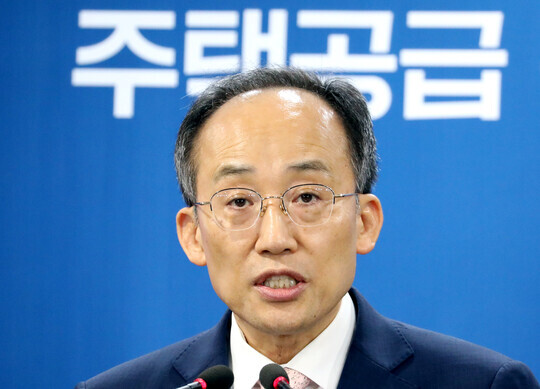 | 추경호 부총리 겸 기획재정부 장관이 26일 오후 정부서울청사에서 '국민 주거 안정을 위한 주택공급 활성화 방안'을 발표하고 있다. (사진=연합뉴스) |