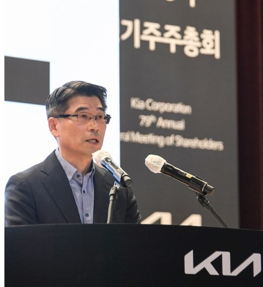| 송호성 기아 사장이 17일 서울 서초구 양재사옥 대강당에서 열린 제79기 정기 주주총회에서 발언을 하고 있다. (사진=기아) |