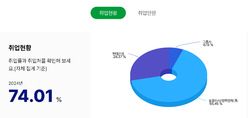 고용노동부 고용24에 따르면, 지난 2024년 기준 현대건설 기술교육원 수료생 444명 중 356명이 취업에 성공했는데요. 약 80%의 높은 취업률을 기록했습니다.
