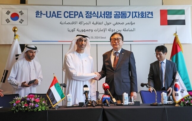 한국과 UAE는 이날 CEPA를 체결했다. CEPA는 자유무역협정(FTA)와 유사한 자유무역협의 하나로, 양국 간 상품·서비스 시장 개방뿐 아니라 포괄적 협력 강화를 포함한다.