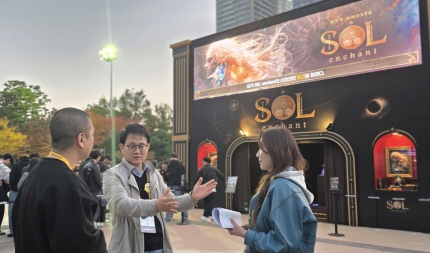부스 방문에 앞서 방 의장은 벡스코 야외 광장에 설치된 '솔: 인챈트' 홍보 공간을 먼저 찾았다. 그는 긴 대기열을 직접 체험하며 현장을 찾은 이용자들과 대화를 나누고 이벤트 진행 상황을 점검했다.