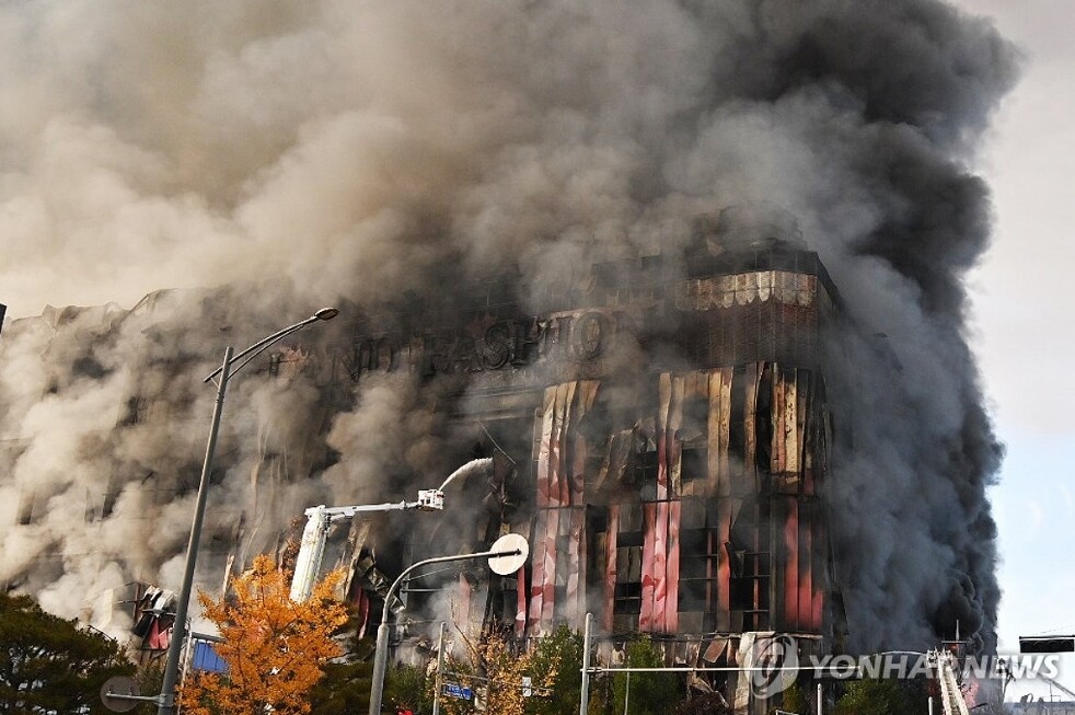건물 일부가 이미 붕괴됐으며 낙하 및 지하층 침하 위험까지 우려돼 안전 문제로 진화 작업에 난항을 겪는 것으로 전해졌다.