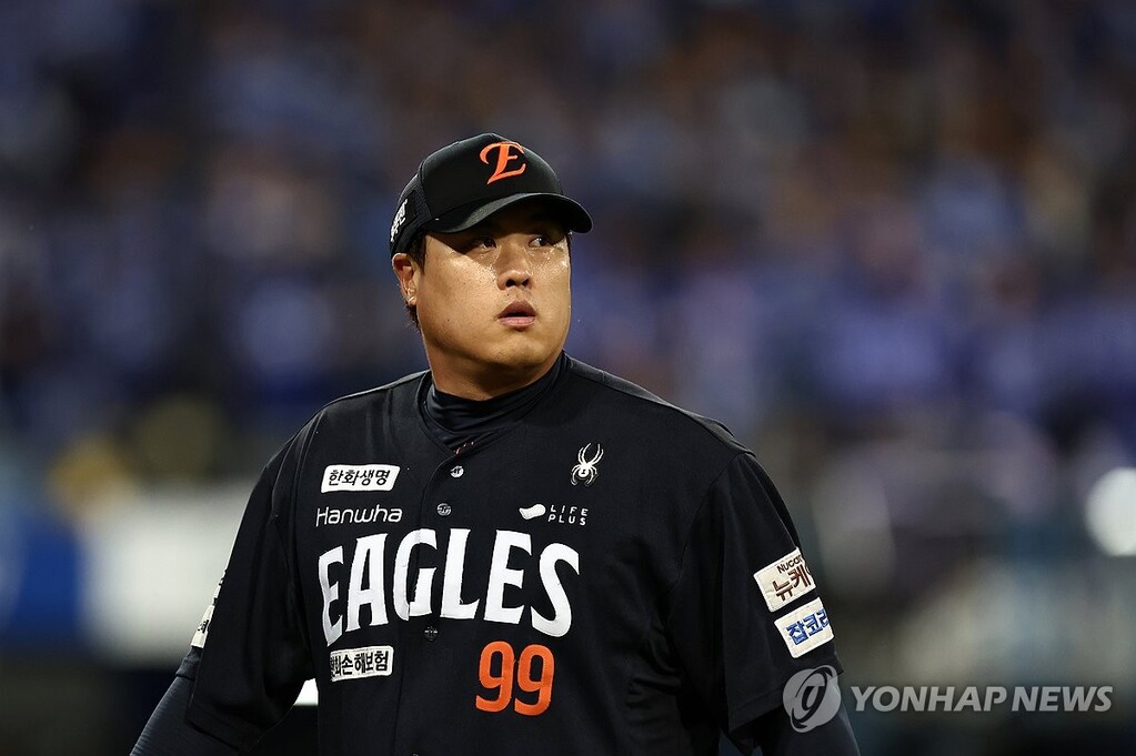 21일 대구삼성라이온즈파크에서 열린 2025 KBO 포스트시즌 플레이오프 한화 이글스 대 삼성 라이온즈 3차전. 2회 말 한화 선발 투수 류현진이 투구를 마친 후 더그아웃으로 향하고 있다. 사진=연합뉴스 |