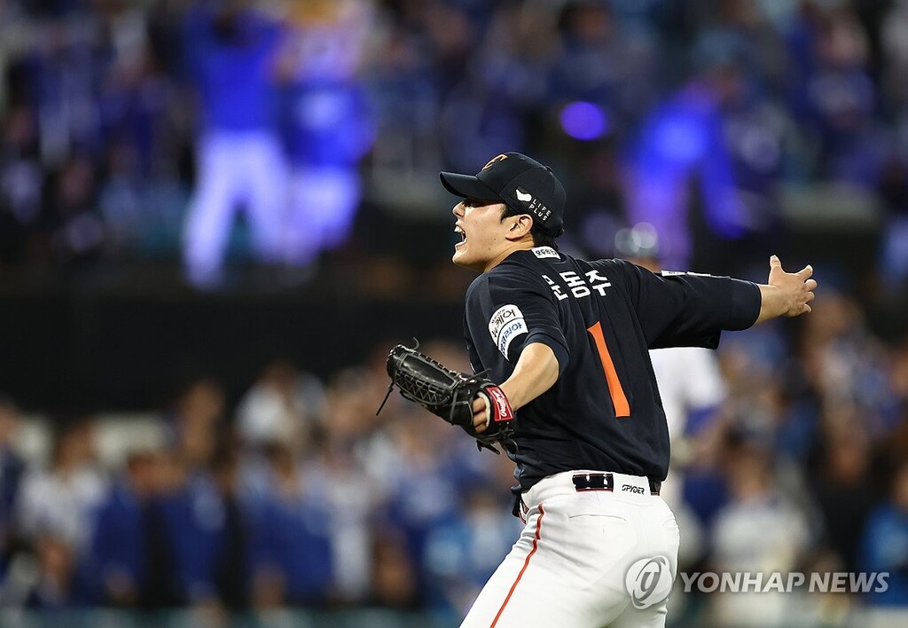 21일 대구삼성라이온즈파크에서 열린 2025 KBO 포스트시즌 플레이오프 한화 이글스 대 삼성 라이온즈 3차전. 7회 말 위기를 무실점으로 넘긴 한화 투수 문동주가 포효하고 있다. 사진=연합뉴스 |